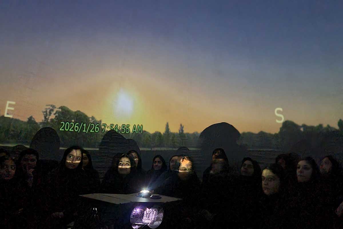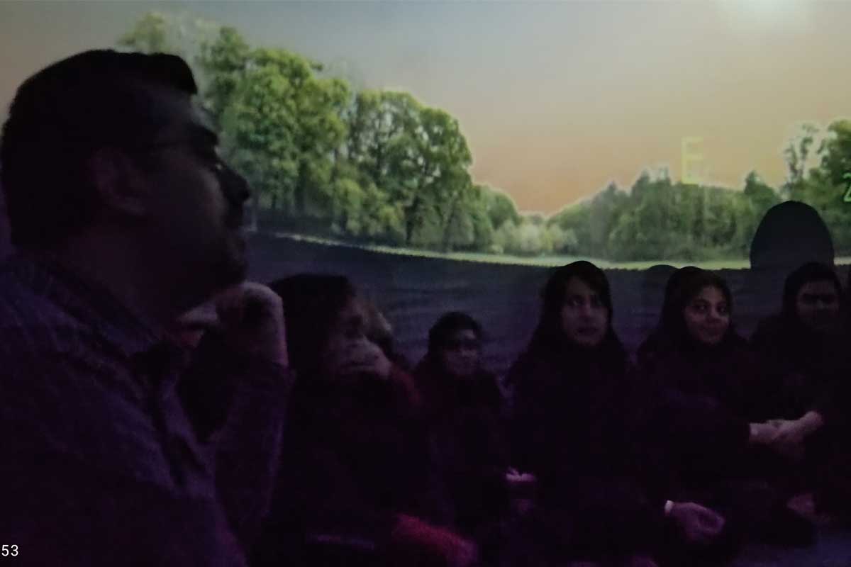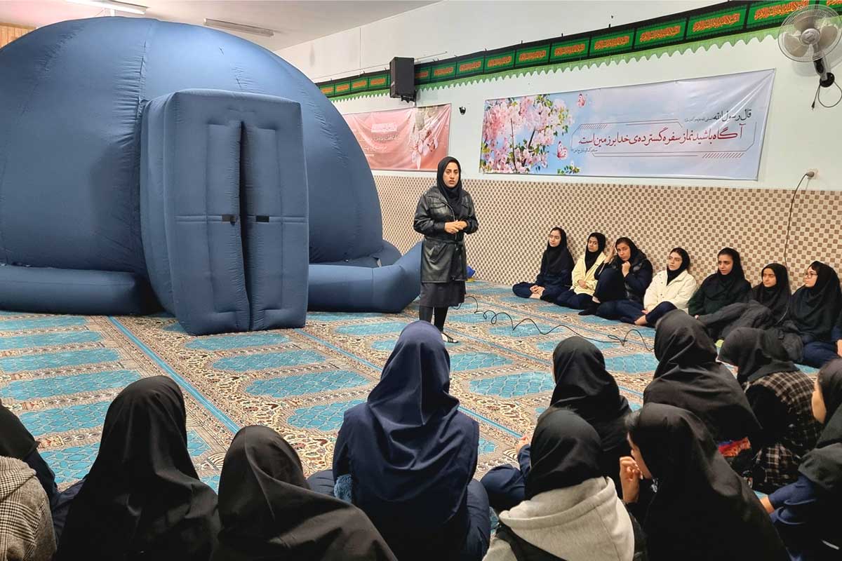 در این نمایش علمی، دانشآموزان با سیارات، ستارگان، کهکشانها، صورتهای فلکی و پدیدههای جذاب آسمانی آشنا شدند و توانستند تجربهای نزدیک به مشاهده واقعی آسمان شب را در محیط مدرسه داشته باشند.